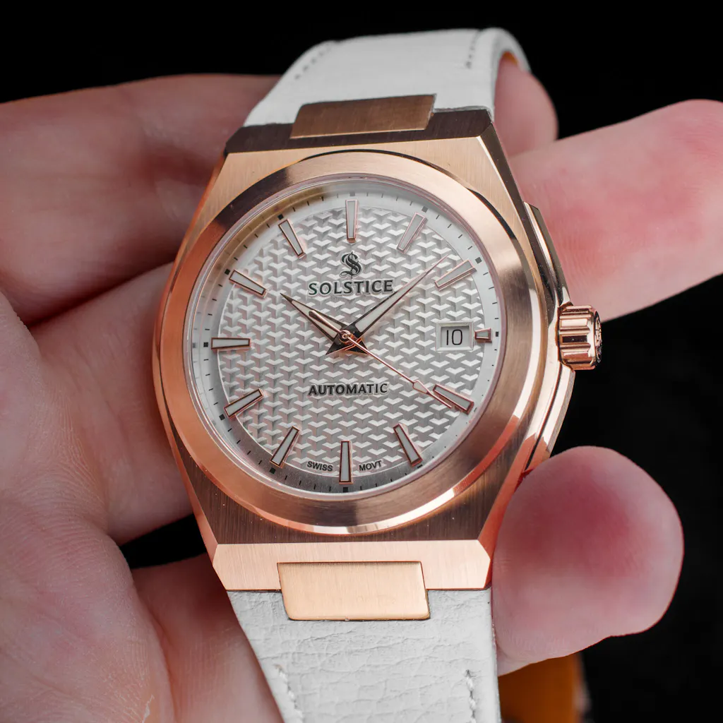 Solstice watches feature the Swiss-made Sellit SW200-1 Automatic aself-winding mechanical movements with 26 jewels. These jewels reduce friction and wear on the movement's parts, ensuring smooth and accurate timekeeping.